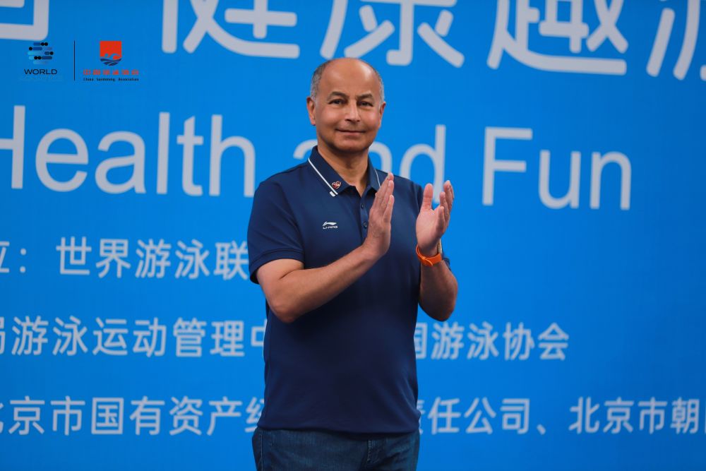 9月26日,世界泳联主席侯赛因·阿尔-穆萨拉姆在2025年世界泳联中国游泳日北京主会场活动现场。主办方供图